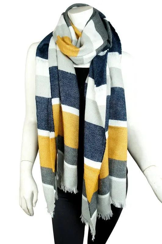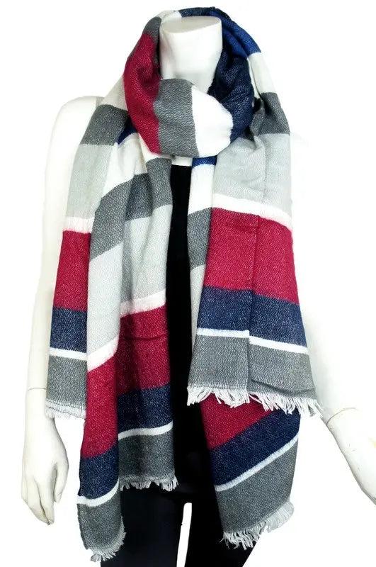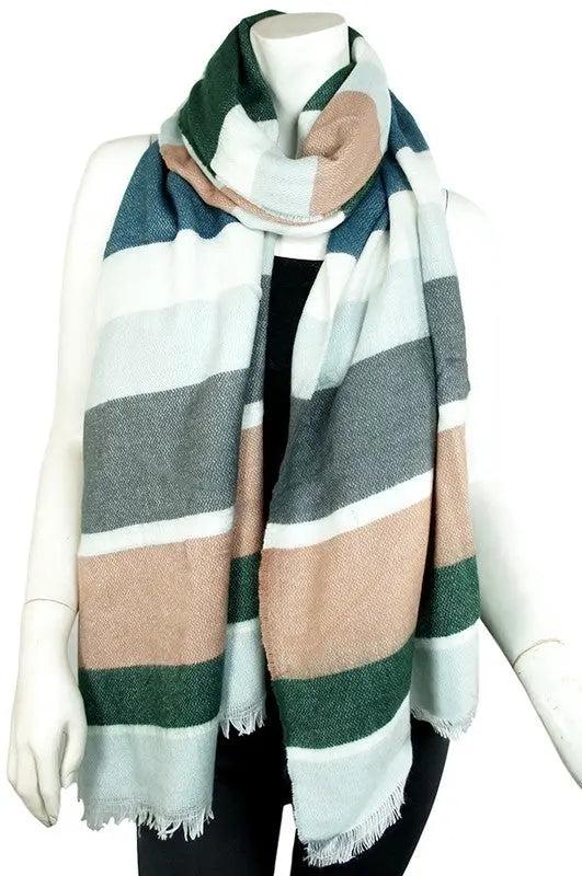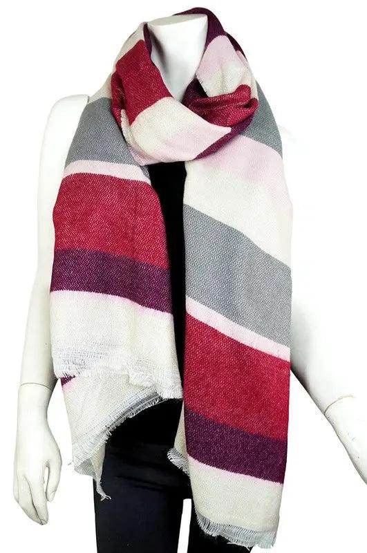 - Multicolor Striped Fringe Scarf