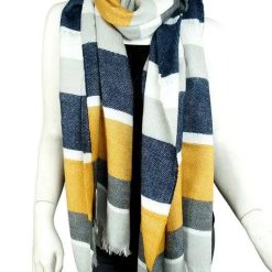 Casual Elegance: For a relaxed yet polished look, pair the scarf with a plain white tee, your favorite jeans, and ankle boots. Let the scarf be the statement piece by draping it loosely around your neck, allowing the stripes and fringes to add texture and color to your outfit.