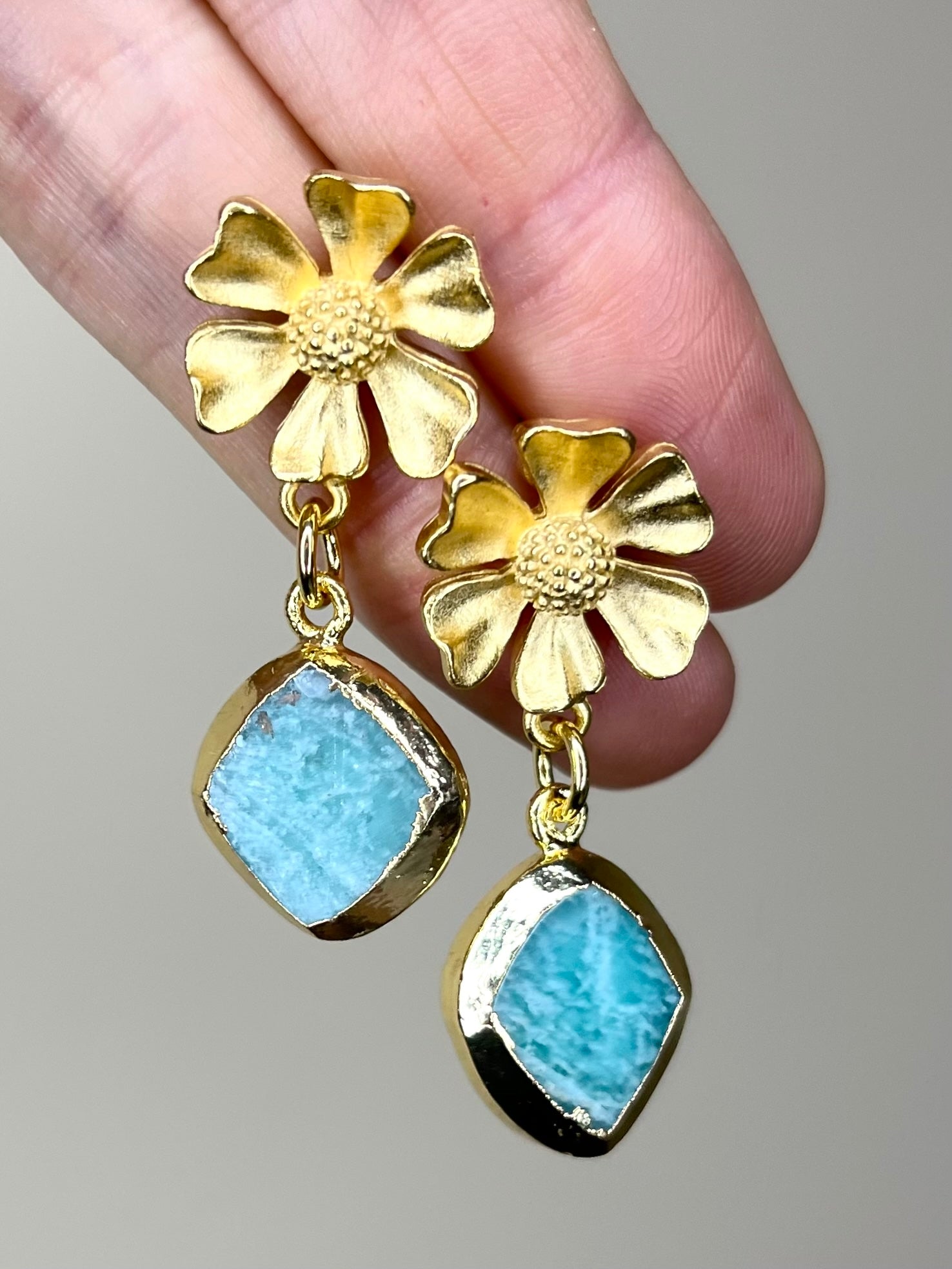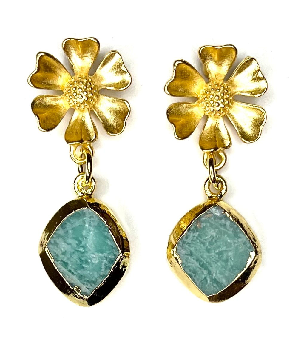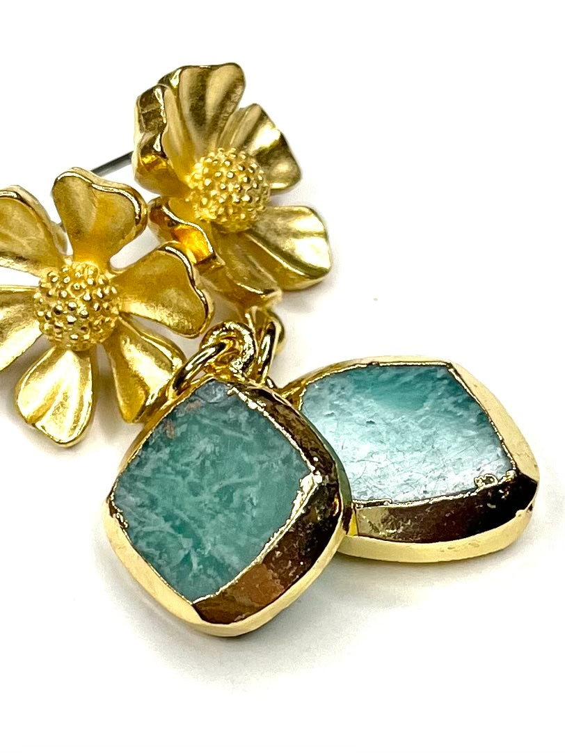 - Small Drop Earrings-?are made of gold leafed Amazonite to elevate your look and add sophistication