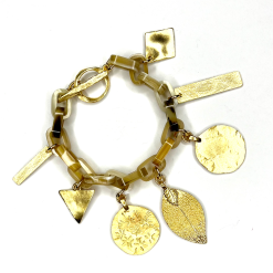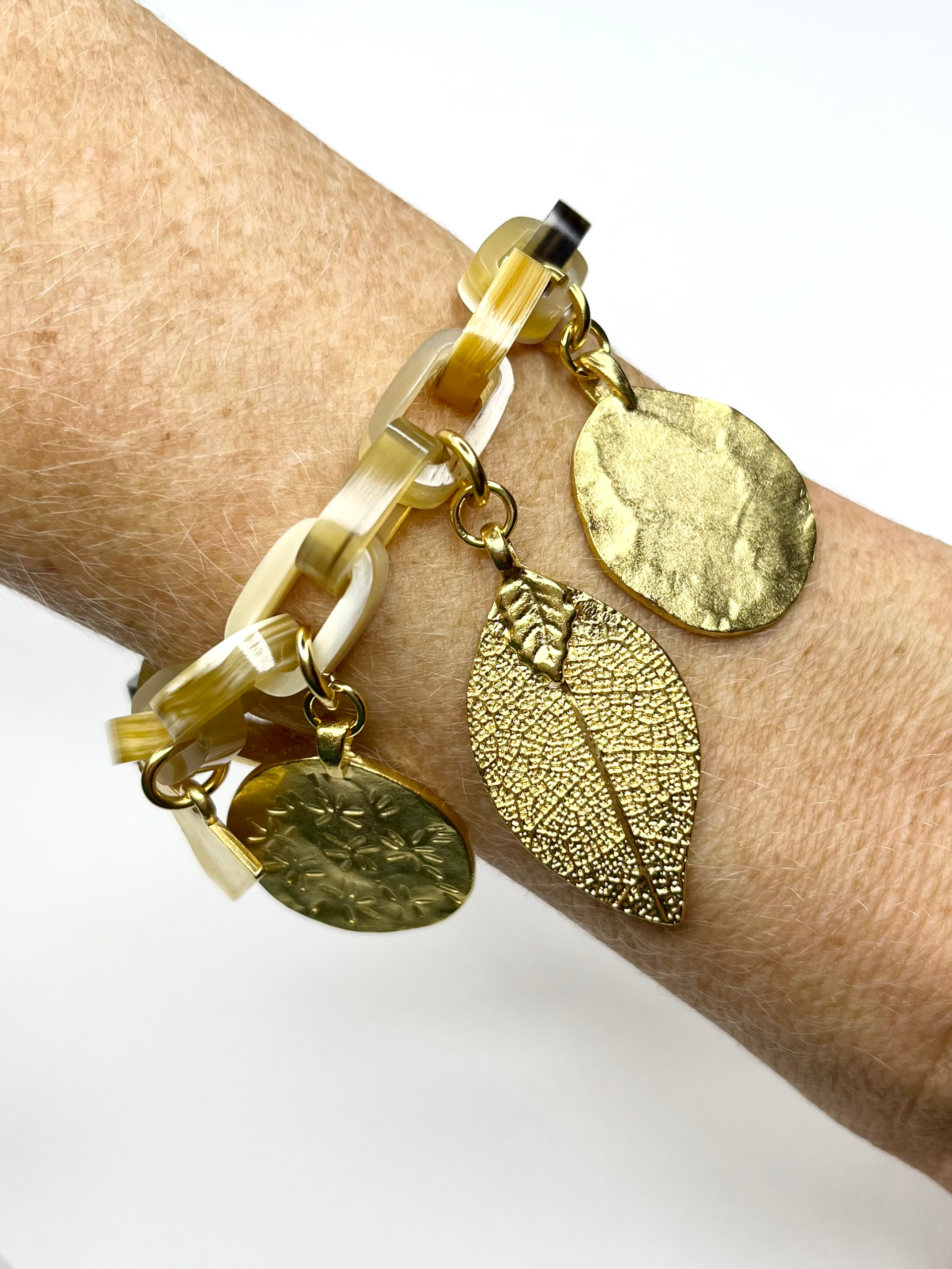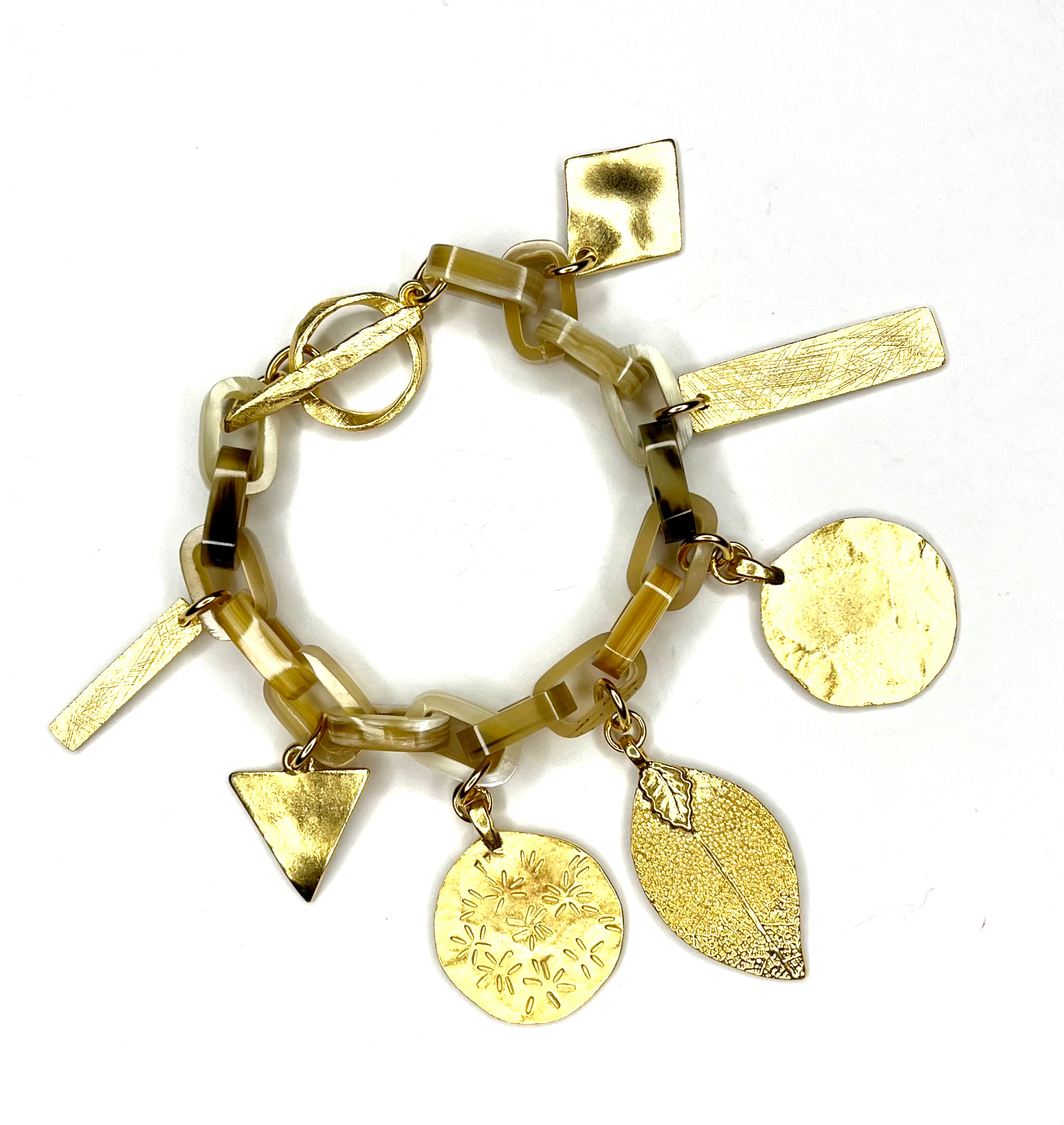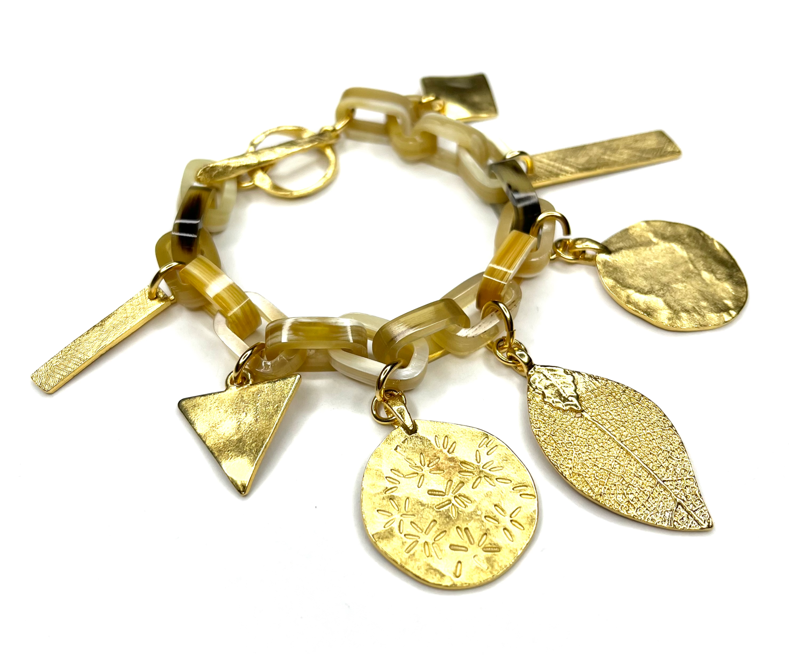 - Organic Chain and Gold ?Charm Bracelet- embellished with seven satin gold plated charms
