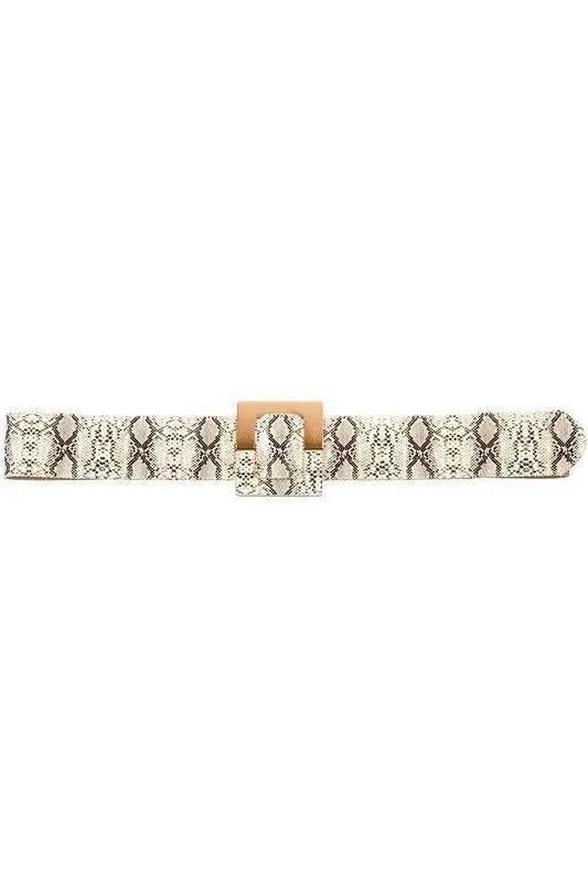 Walk on the Wild Side, this beige belt with an embossed snakeskin pattern is the perfect way to add a little wildness to your outfit. The faux leather looks and feels just like the real thing, but without the hefty price tag. Whether you wear it with jeans or a dress, this belt will help you make a statement.