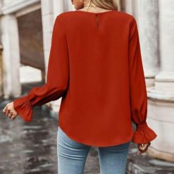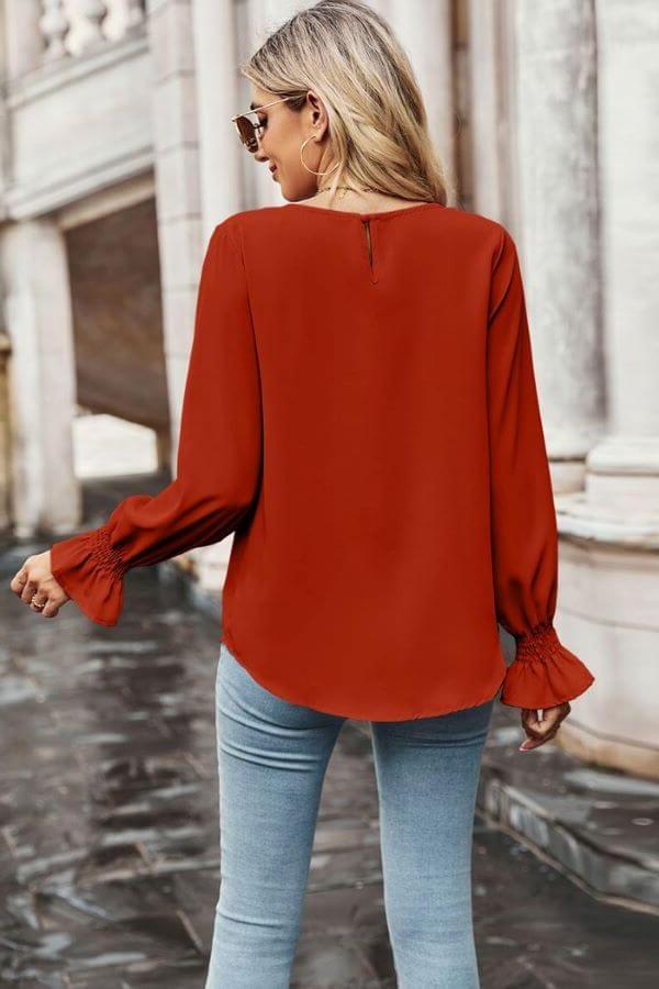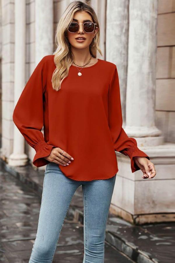 The Crew Neck Ruffle Bubble Sleeve Top isn’t just another addition to your wardrobe; it’s a versatile piece that works in almost every situation, ensuring that you’re always the epitome of style, no matter the setting.