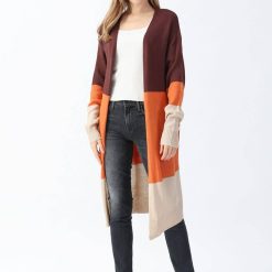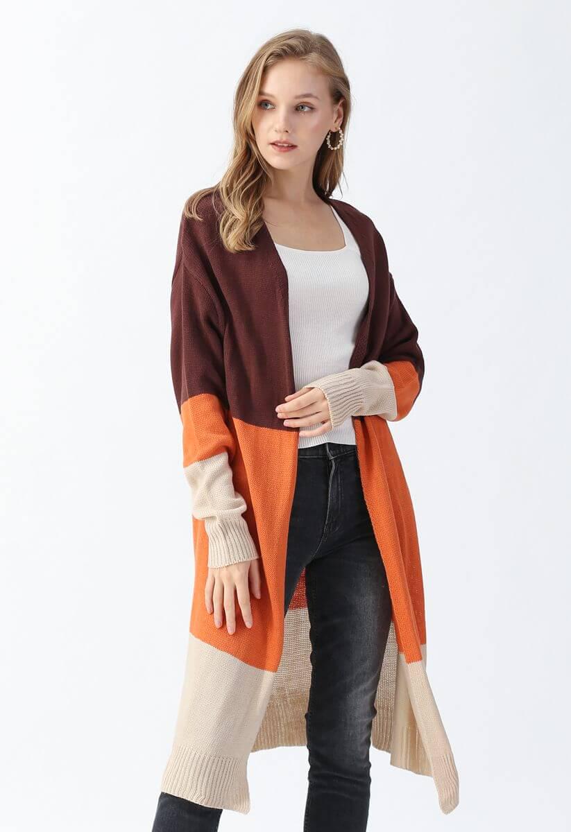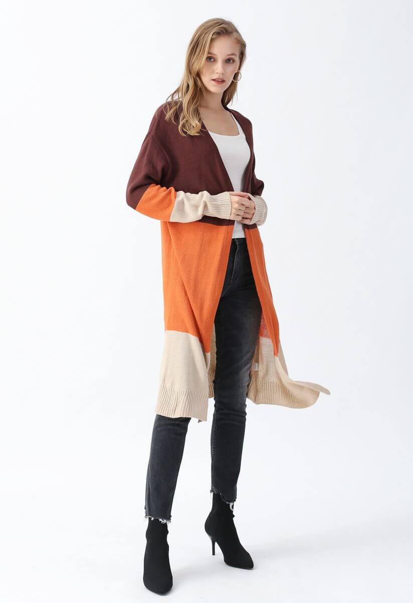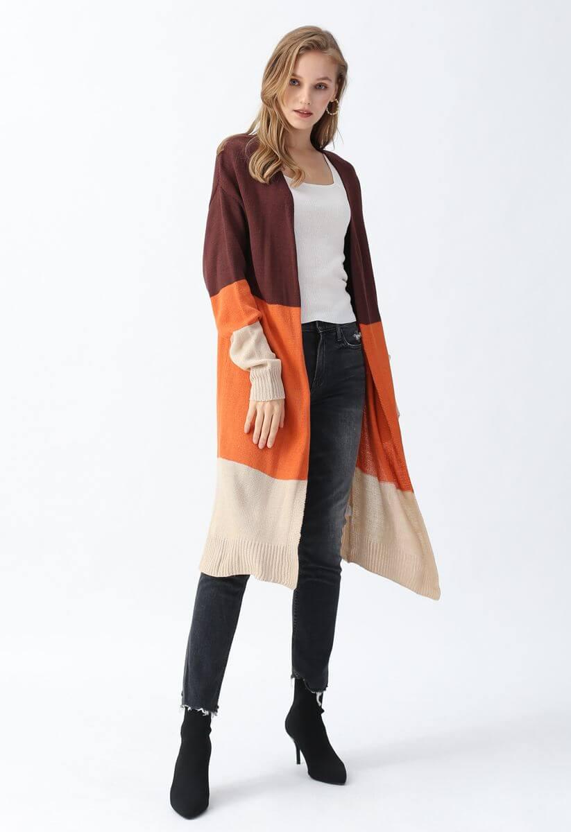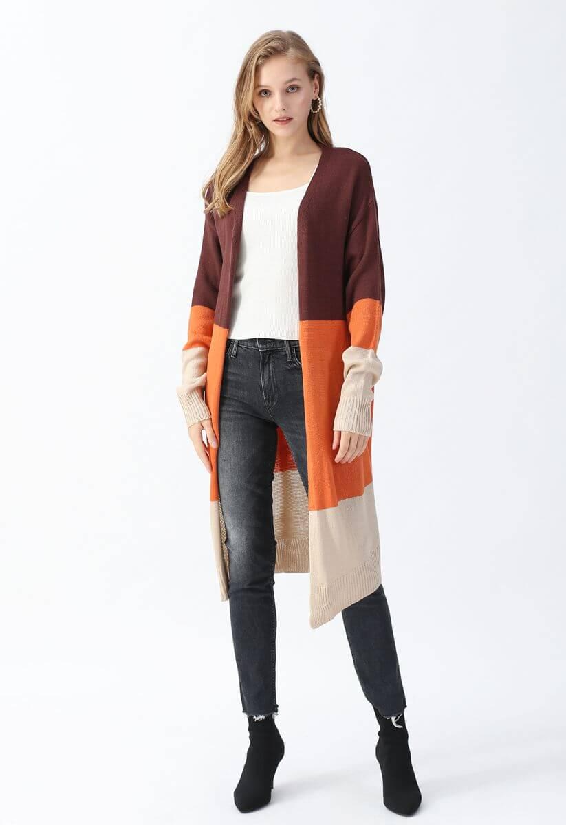 No wardrobe is complete with a proper collection of cardigans! This color-blocked one will enter vibrancy into your existing lot of neutrals. It has an open front and rib knitting along the cuffs and hem. It’s perfect for snuggling up around the house or heading out with a light layer.