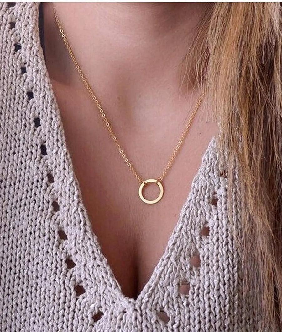 This Charming Never-Ending Circle Necklace adds a touch of elegance and simplicity to any look. Crafted from a delicate, yet durable material, this necklace features a miniature, open circle charm on a thin chain that adds a unique and modern touch. With its classic design, this necklace is the perfect everyday staple piece that can easily add life to any outfit. It is sure to become one of your favorite accessories.