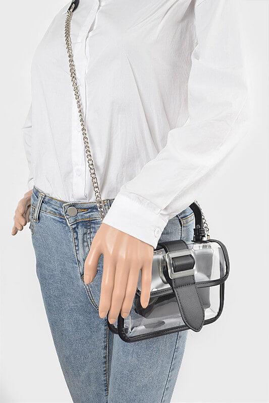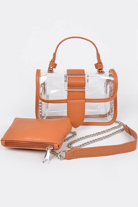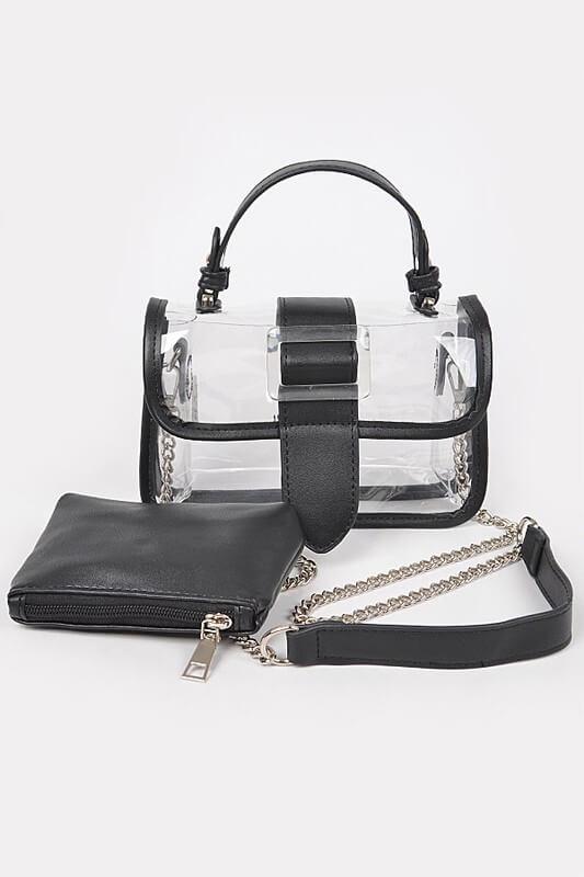 Stadium Style Bag is carefully crafted from durable, clear vinyl and detailed with trim in your favorite colors. Stadium Style Bag shows off its versatility with a removable inner bag that can hold your necessities or be used as a separate coin purse; and with two ways to carry, a short handle on top or a long stylish removable chain strap to wear crossbody or over one shoulder, you are covered from day to evening. The Stadium Style Bag checks all the boxes!