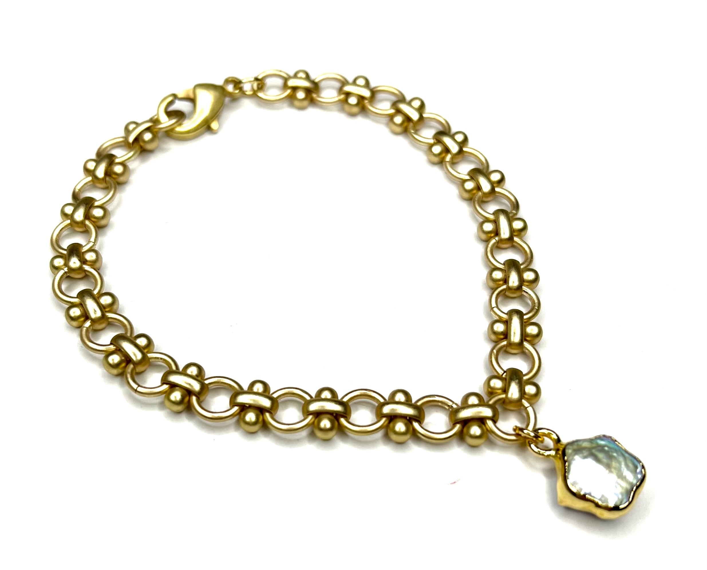 - Bezel Set Pearl Focal Bead- adds contrast and sophistication