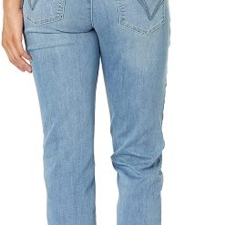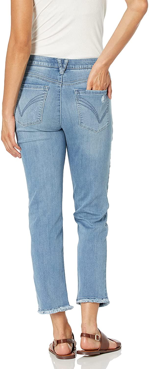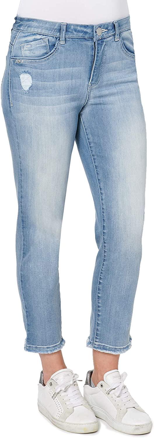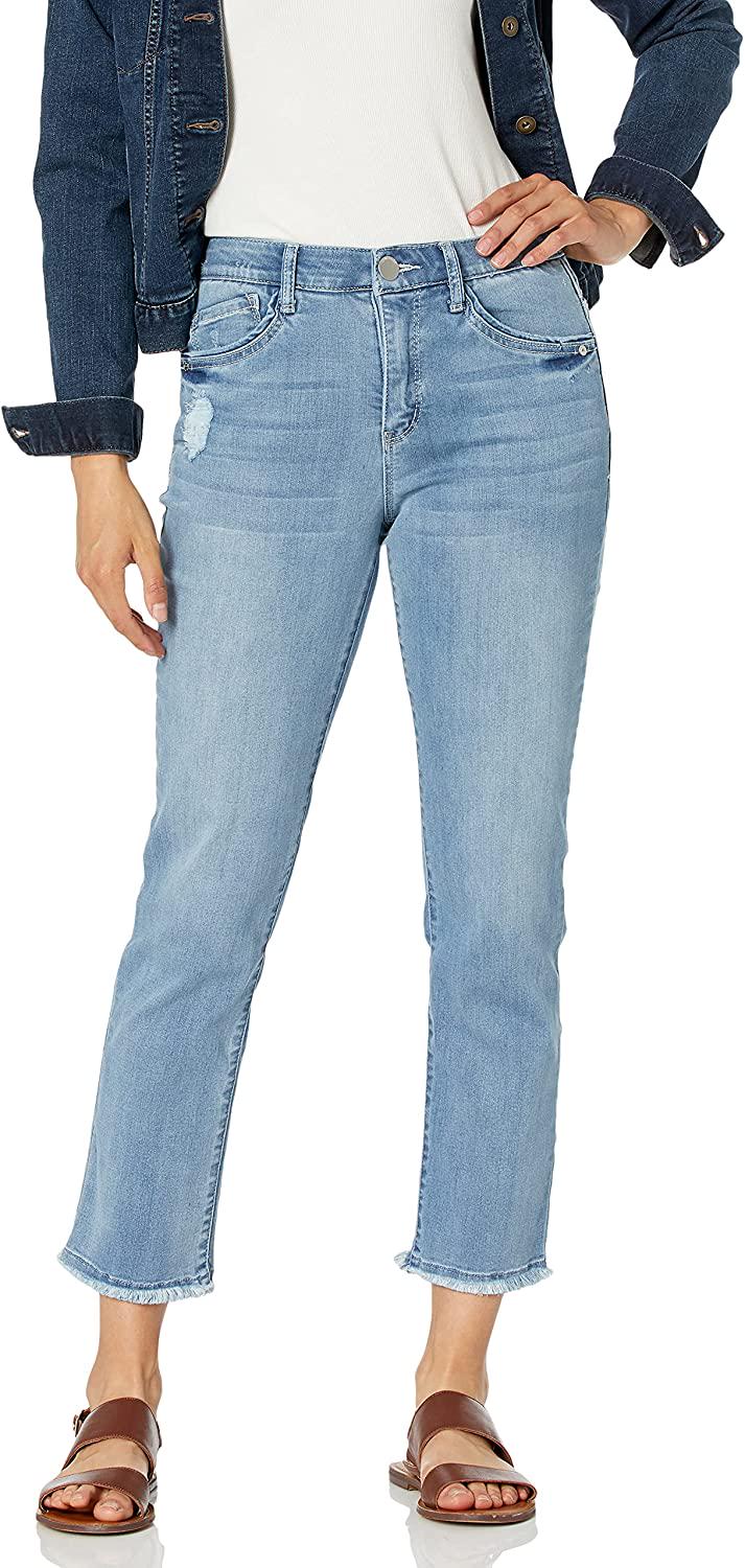 Perfectly lived-in from the first time you wear them, these high-waisted slim straight ankle length jeans are cut from buttery-soft luxe touch stretch denim featuring lavish lyocell for added comfort and spandex for easy movement. Fashioned with a distressed finish, embroidered back pockets, and frayed hems for added edge. Wear with fit confidence courtesy of the signature “Ab” solution® fit technology built-in tummy-control power mesh panels and a no-gap elastic waistband that comfortably molds-and-holds.