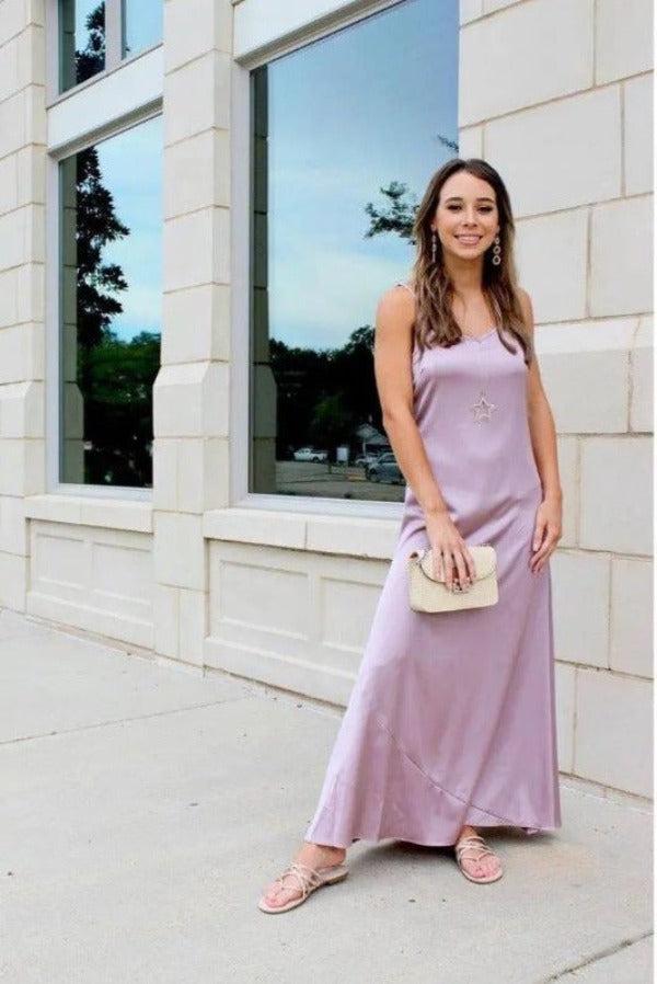 - Satin maxi slip dress