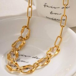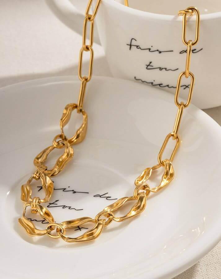 Laid-back Luxe: For a relaxed weekend brunch, sport the necklace with a V-neck tee, high-waist jeans, and ankle boots. Keep the makeup minimal, letting the gold-plated necklace be the focal point.