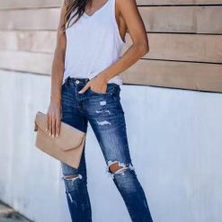 Looking for a denim option that can be worn every day of the week? Take a look at our Everyday Midrise Ankle Skinny Jean. These jeans are ideal for everything from date night to running errands, thanks to their high rise fit and raw distressed hem. Furthermore, the light distressing adds a personal touch that you’ll appreciate.