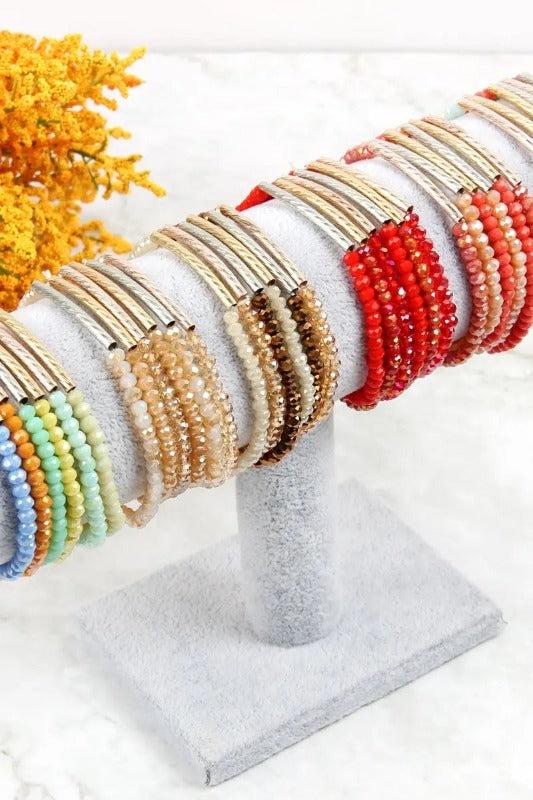 Put together a dazzling ensemble with these Fiesta Frenzy Beaded Bracelets. In an assortment of colors, these polished-stone-and-gold stackable bracelet bars are perfect for dressing up any outfit. Whether you’re headed to a party or just want to add a touch of glamour to your everyday style, these bracelets will help you look your best.