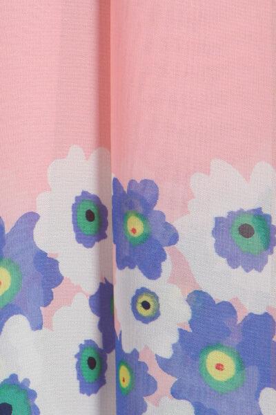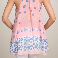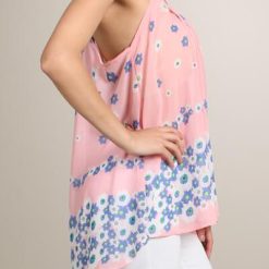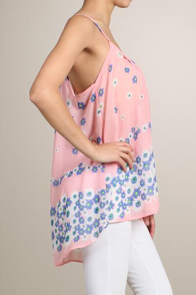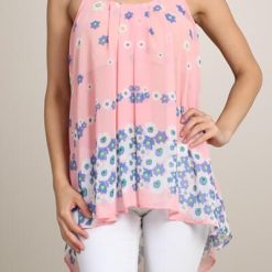 Step out in style with our Floral Chiffon Swing Top! Made from lightweight and flowy chiffon, this top has a pretty pink floral print and spaghetti straps. The gathered back makes it super flattering, while the bandeau or cami underneath makes it perfect for any occasion.
