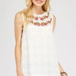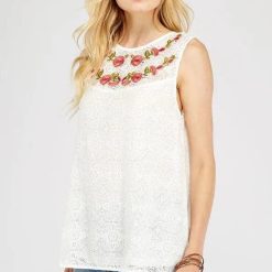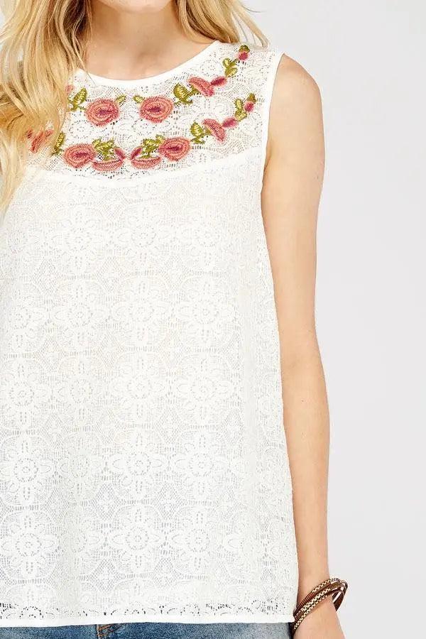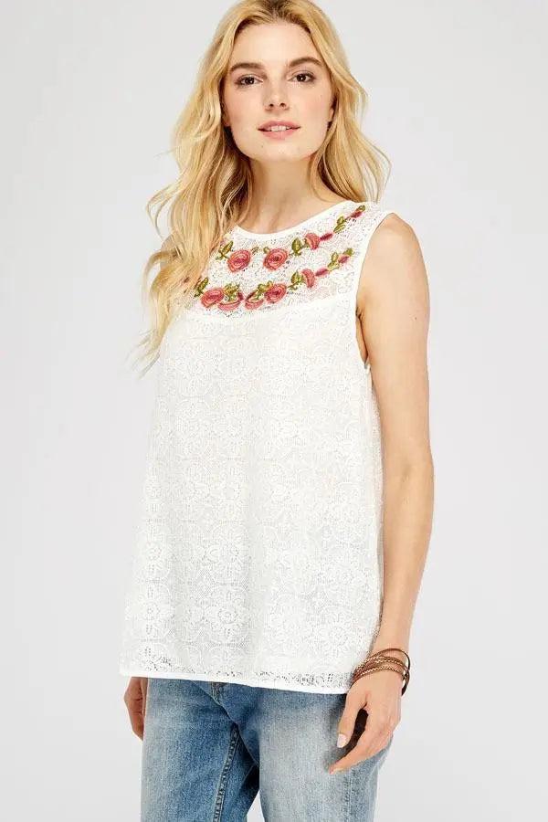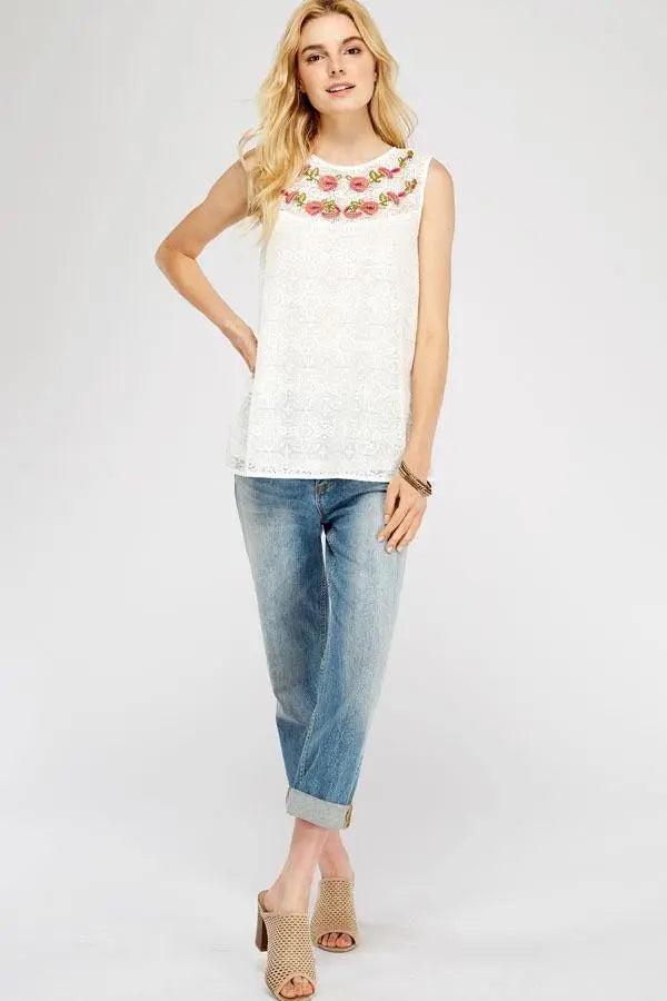 Floral Embroidered Boat-Neck Sleeveless Top Jolie Vaughan Mature Women’s Online Clothing Boutique