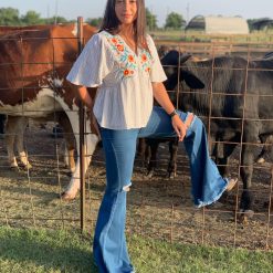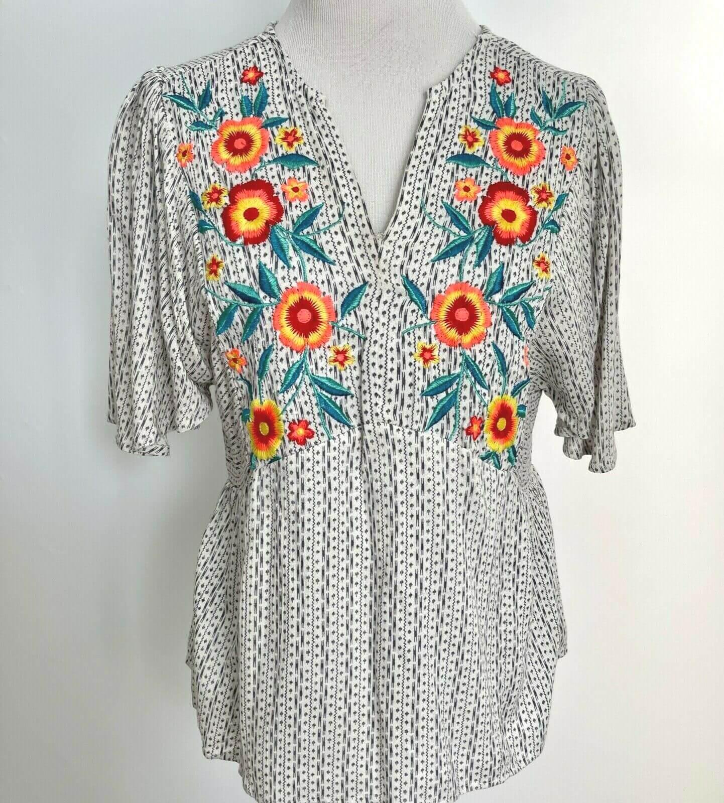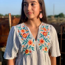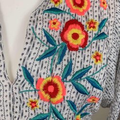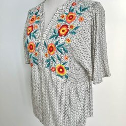 What a stunning blouse with just the ideal amount of embroidery. The floral is incredibly vibrant, and the blouse is so light and breezy! This blouse is not at all tight, it is very forgiving, and it flows beautifully!