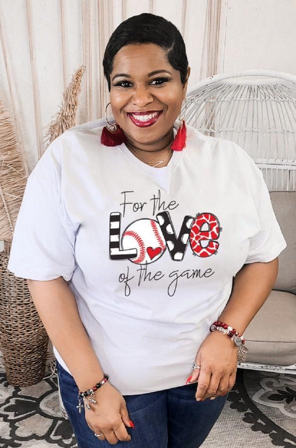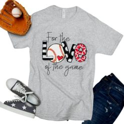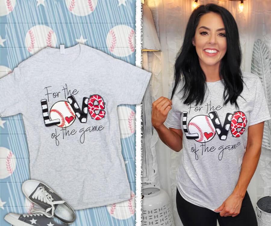 - Design features the phrase “For the Love of the game” printed in trendy patterns including stripes, polka dots, and a giraffe print. Of course the “O” in love is a baseball.
