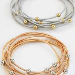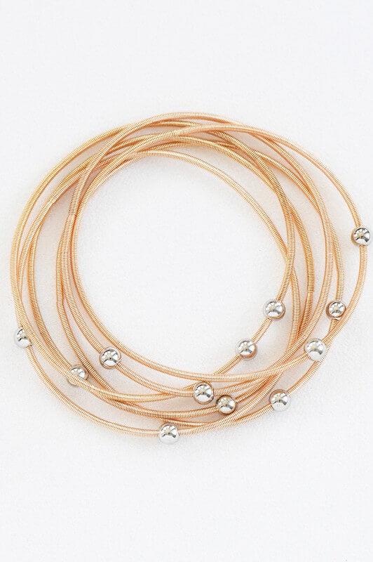 - Set of 6 elastic metal coil bracelets.