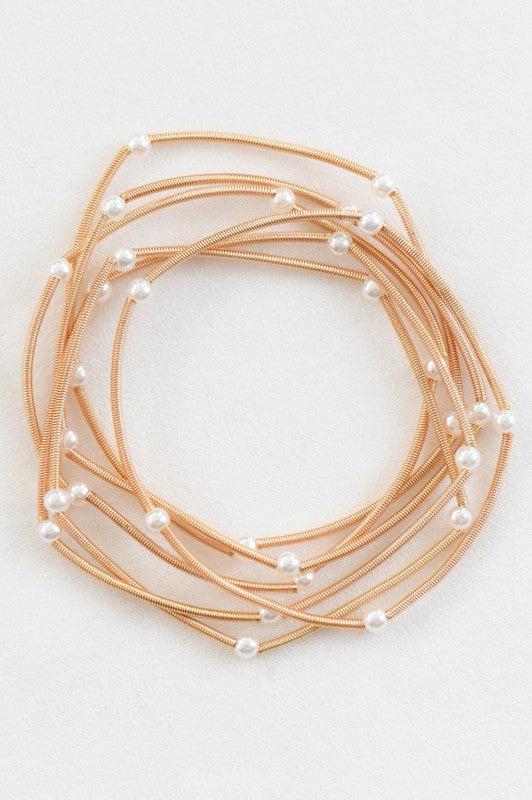 These Gold Pearl Guitar String Bracelet Sets will look great in your jewelry collection! Because of their lightweight and dainty design, these bracelets are appropriate for any occasion. The gold is surrounded by dainty pearls, making it the perfect accessory for any outfit. Furthermore, the stretchable design allows them to be worn on any wrist size. Combine our entire collection of guitar string bracelet sets to make something truly one-of-a-kind.