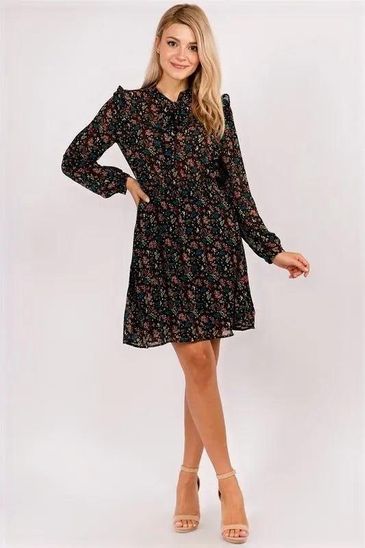 Flirty and feminine… This Floral Tie-Neck dress flatters a variety of body types and is sure to become one of your favorites!