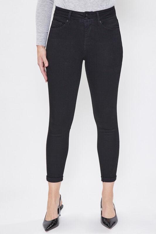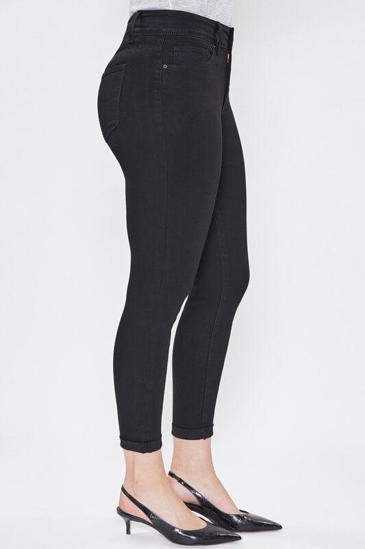 Discover the perfect blend of style, comfort, and functionality with our Missy Hide Your Muffin Top 2 Button Rolled Cuff Jeans. These jeans aren’t just about a trendy appearance; they’re crafted meticulously to offer a flattering fit. With a classic five-pocket construction, they provide ample storage without compromising on style. The rolled cuff hem adds a dash of casual flair, making these jeans versatile for various occasions. The double-button closure, combined with a front zip and belt loops, ensures a snug and customizable fit. But the real magic? Their design gently streamlines your midsection, effectively helping to smooth and hide that pesky muffin top. With these jeans, confidence comes naturally!