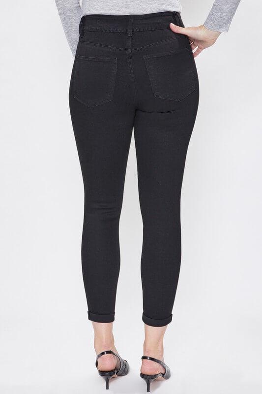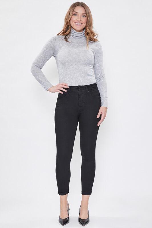 The design of the Missy Hide Your Muffin Top 2 Button Rolled Cuff Jeans is not just for aesthetic purposes. The high-rise, combined with the double-button closure, offers gentle compression to the midsection. This subtle shaping effect helps smooth out the silhouette, ensuring the muffin top stays under wraps. Whether you’re moving, sitting, or dancing the night away, these jeans keep you feeling confident and looking your best!
