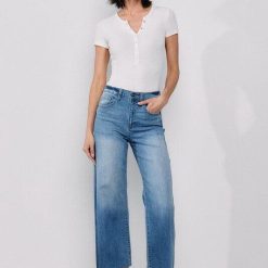 These incredible high rise cropped wide leg jeans are the perfect addition to any wardrobe. Their light hip distressing is modern, while their raw hem adds a touch of edge. With a 26″ inseam, you’ll have legs for days and go-to style that will never go out of fashion.