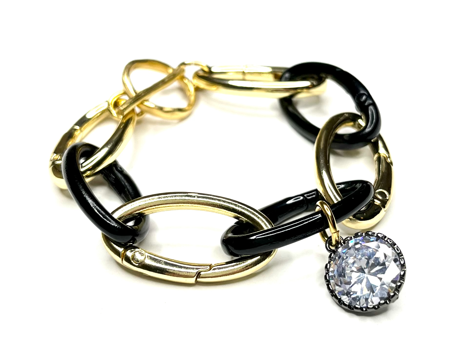- A gorgeous modern bracelet made of gold and black carabiners- very chic and sophisticated and bound to bring you compliments