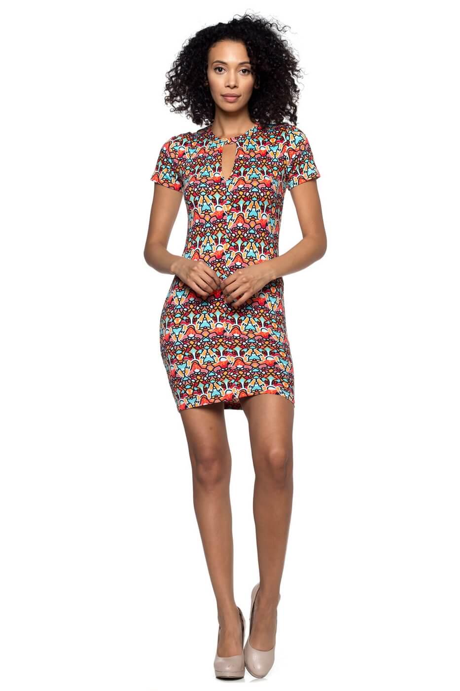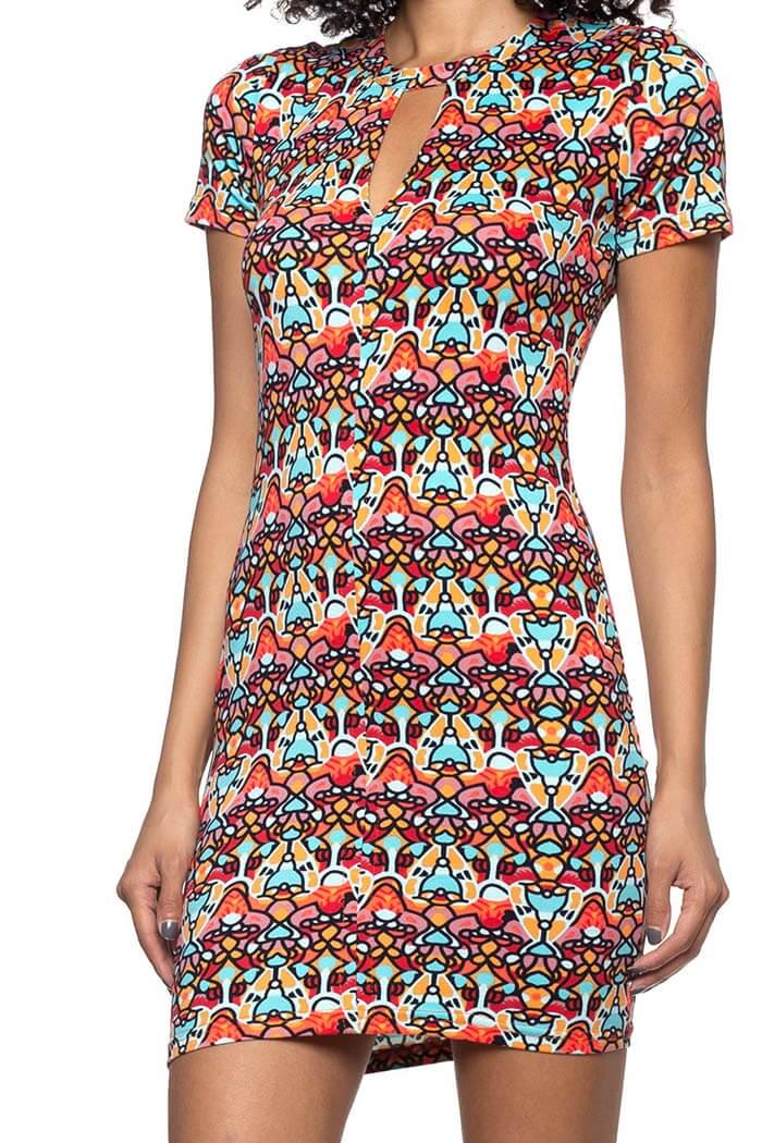 Looking for an eye-catching and edgy way to dress up for your next party? This kaleidoscope dress is just for YOU! Made of light fabric, you can wear it all year. The keyhole cutout neckline creates an eye-catching and one-of-a-kind look.