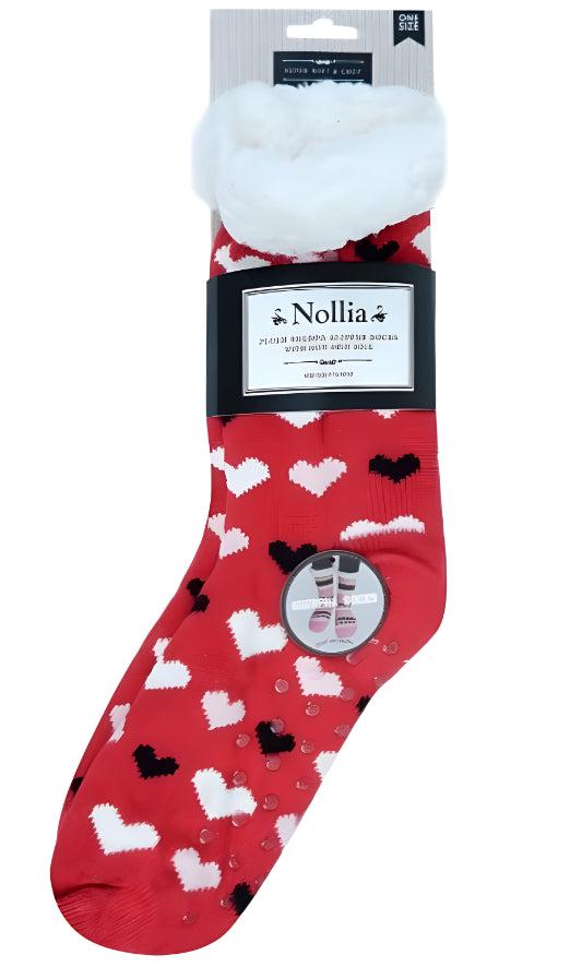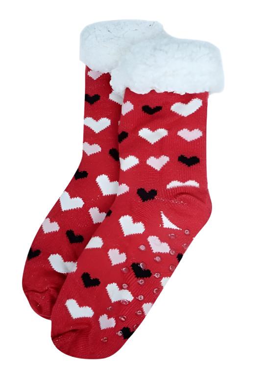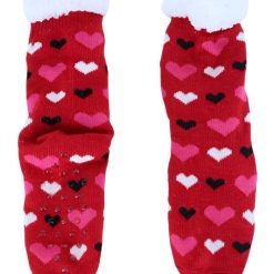 - Heart Pattern: Enjoy the fun and romantic heart pattern that adorns the exterior of these cozy slipper socks.