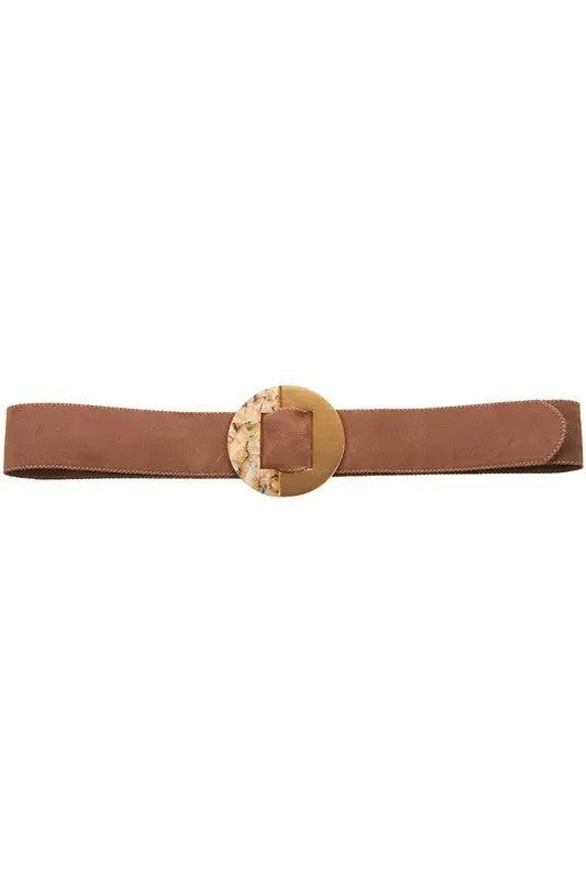 Keep it simple and classy with this natural-colored belt. Stylish yet comfy, this brown belt features an amber embellish. The perfect accessory for any outfit, this belt is the ideal match for any of your outfits. This belt is so versatile! It can be worn with a nice dress, or jeans and boots. The natural color is perfect for any outfit.