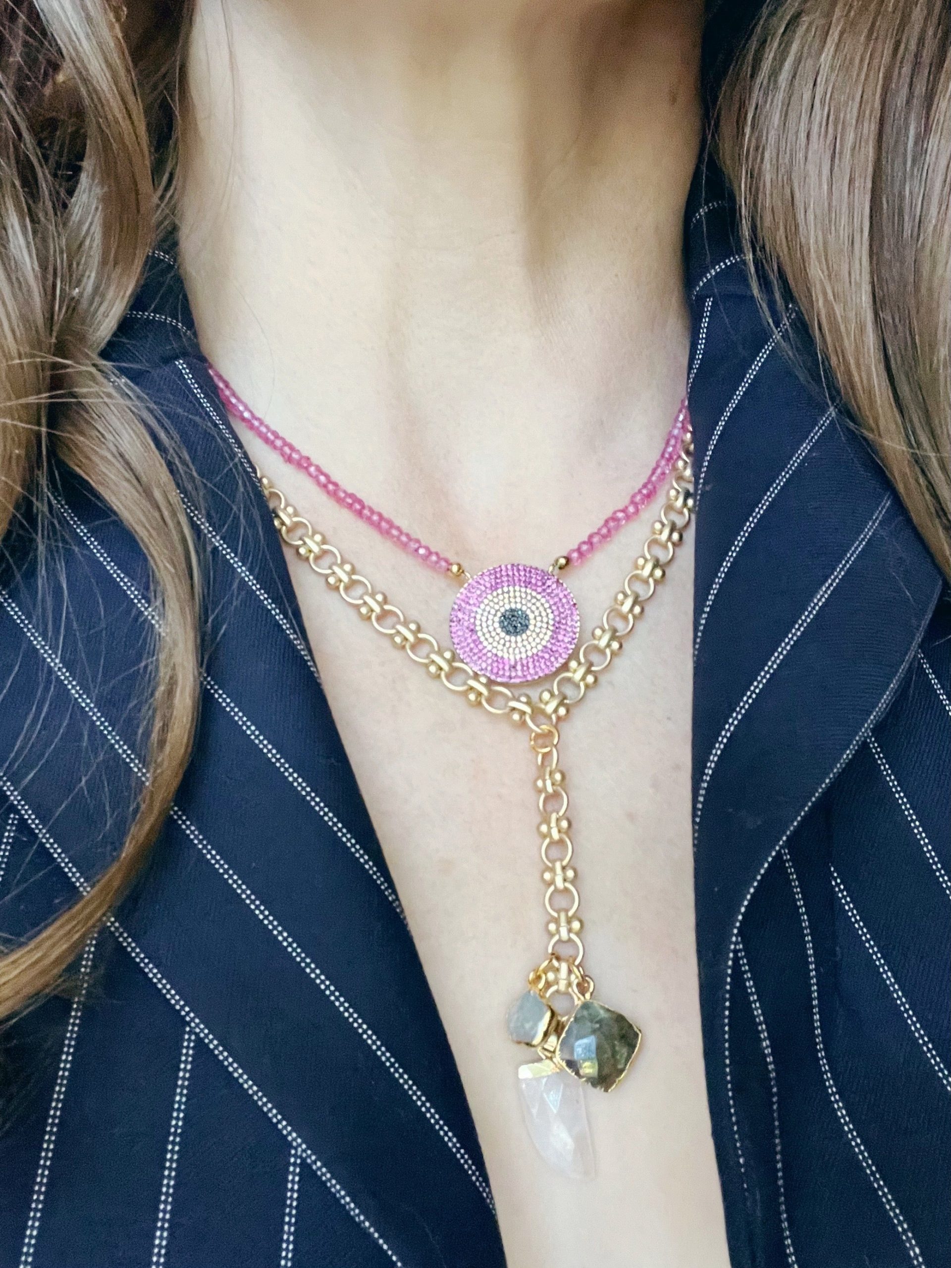 Colorful Jewels that Shimmer and Shine- mix with metal chains to make the color pop