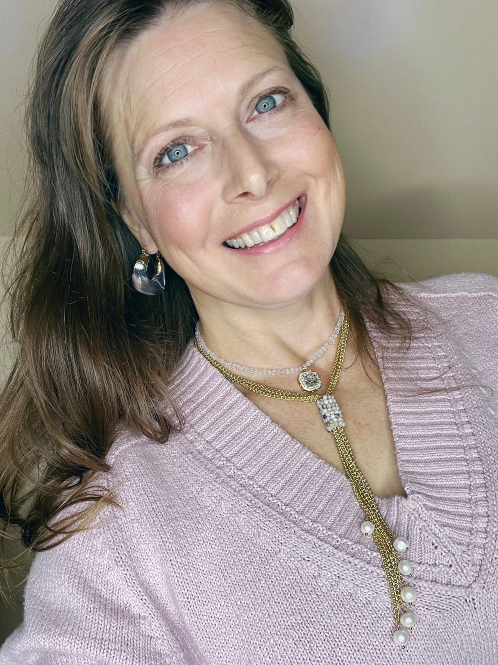 - Beautiful Gold Necklace- a lariat style necklace that features gorgeous freshwater pearls at the end of the chains to evoke classic elegance