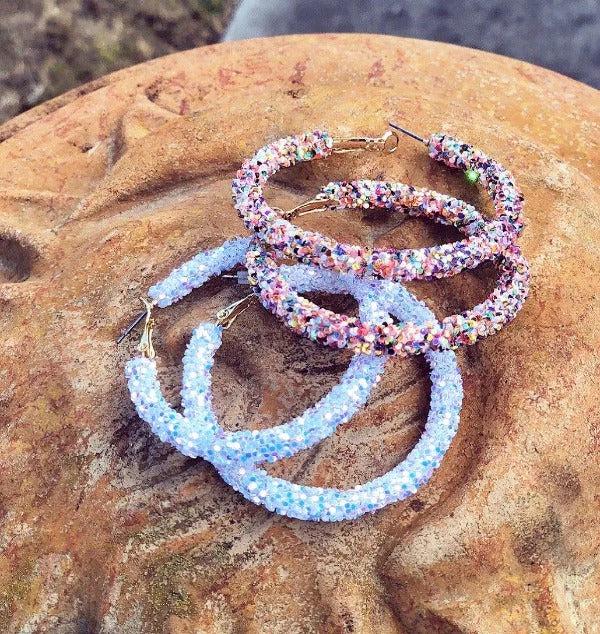 Make your day more beautiful with these fun hoops! Added sparkle and shine to make your outfit stand out!