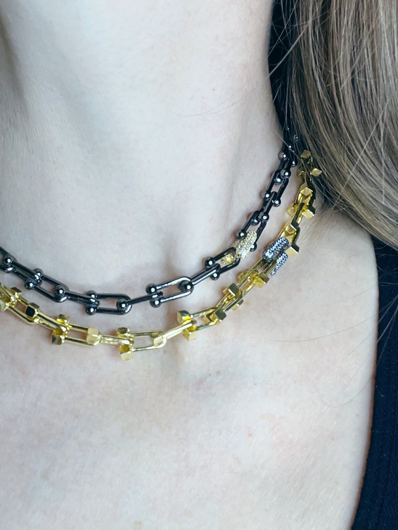 - Mixed Metal Necklace- a pop of contrasting colored metal and rhinestones makes a big statement