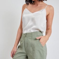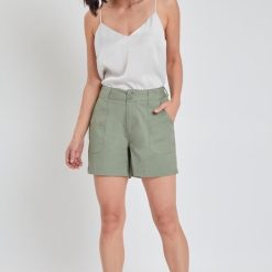Looking for a way to hide your muffin top and enhance your curves? Try our Fern/Olive Green Button Chino Shorts! With a high-waisted fit, these shorts create a slim fit waistline with no muffin top. The 5″ inseam also provides a modest coverage, making these the perfect shorts for any occasion.
